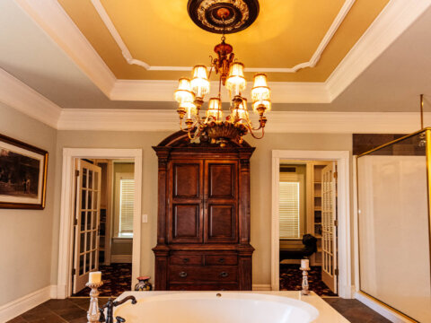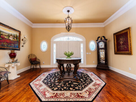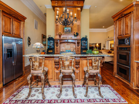 Luxury living meets functional design — The main house features refined finishes, a gourmet kitchen, formal and informal entertaining areas, a master suite fit for a retreat, and a home office.